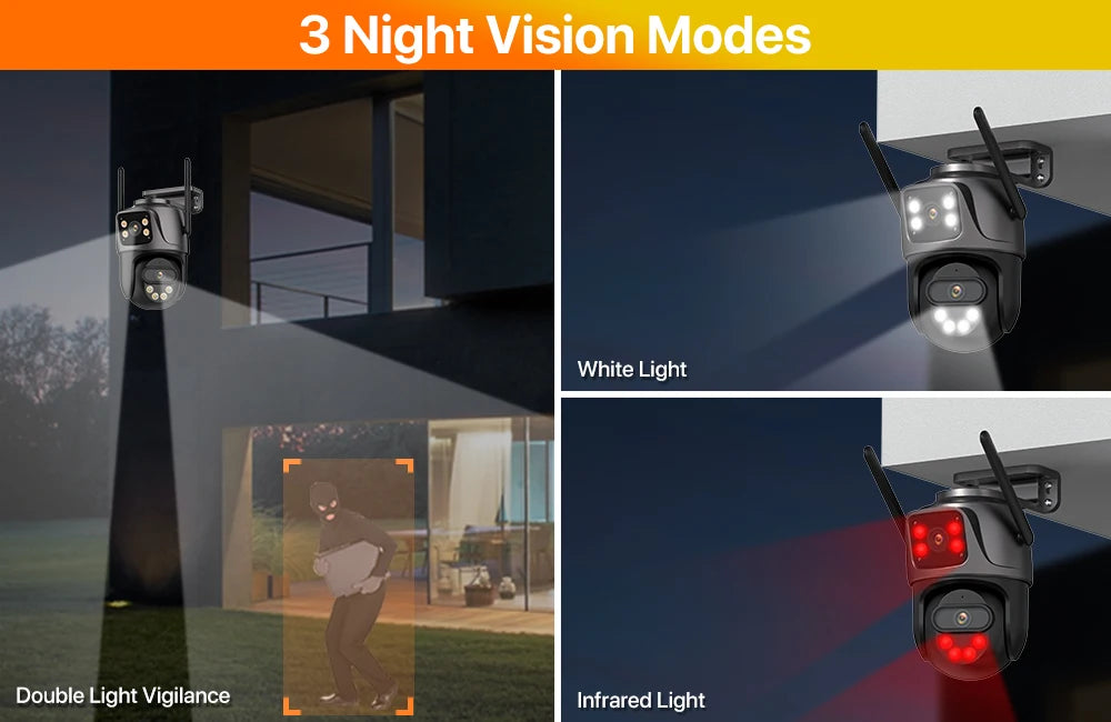 4MP-PTZ-Kamera mit Doppelobjektiv : 8MP-WLAN-CCTV-Kamera