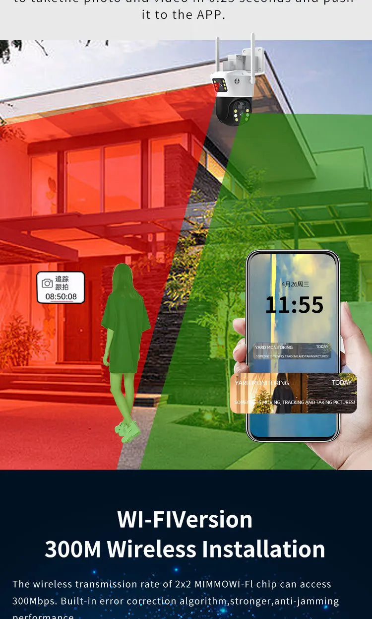 Mehrere intelligente Erkennungssysteme, darunter PIR, Bewegungserkennung und Erkennung menschlicher Gestalt, mit einer effektiven Reichweite von 10 Metern