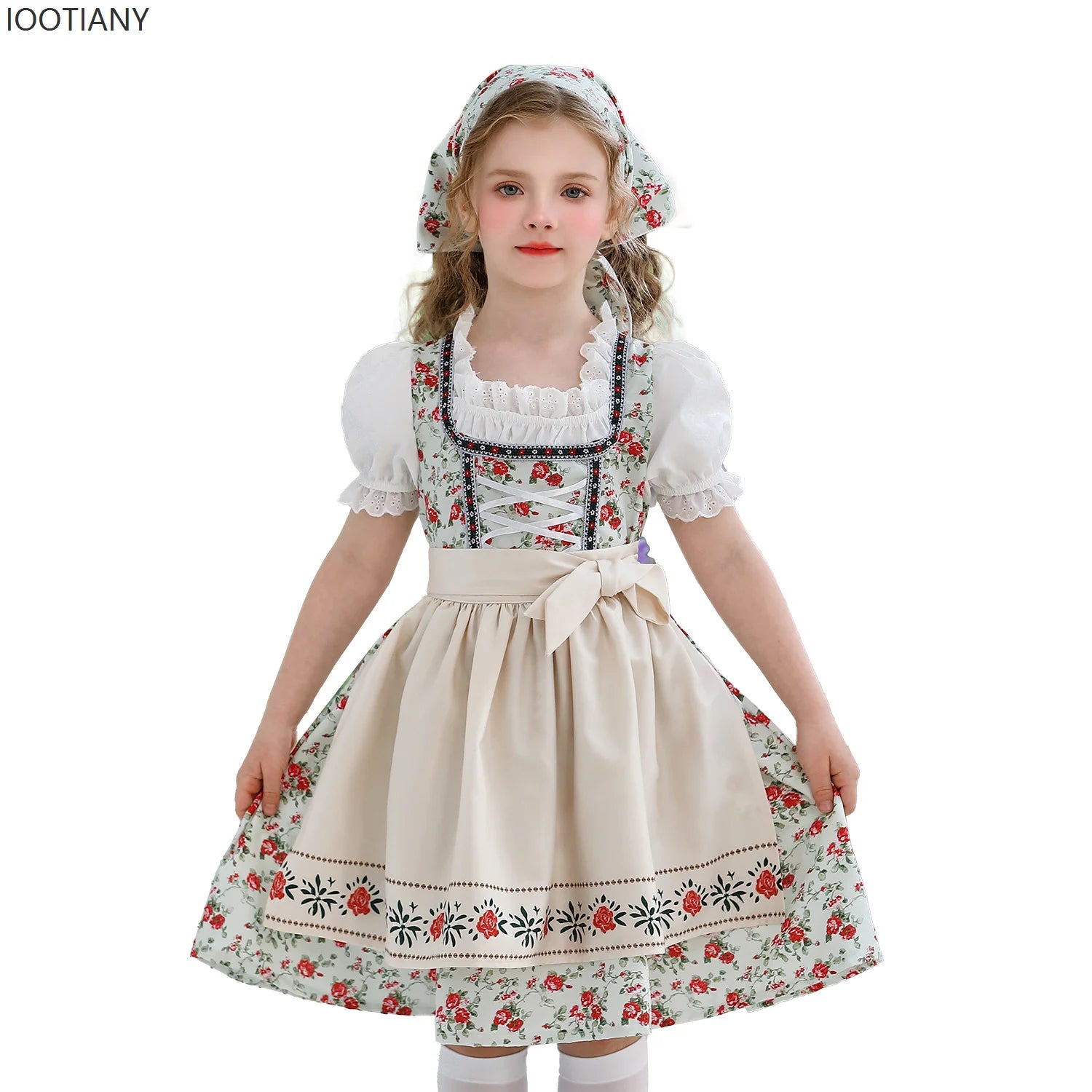 IOOTIANY Deutsches Münchner Oktoberfest Kinder Mädchen Blume Rüschen Spitze Lolita Pastoral Kleid Dienstmädchen Cosplay Performance Kostüm Set