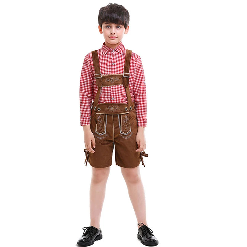 NEU Bayerisches Nationales Oktoberfest-Kostüm für Jungen, Flanell-Lederhosen, kariertes Hemd, Cosplay, Karneval, Halloween, ausgefallenes Partykleid